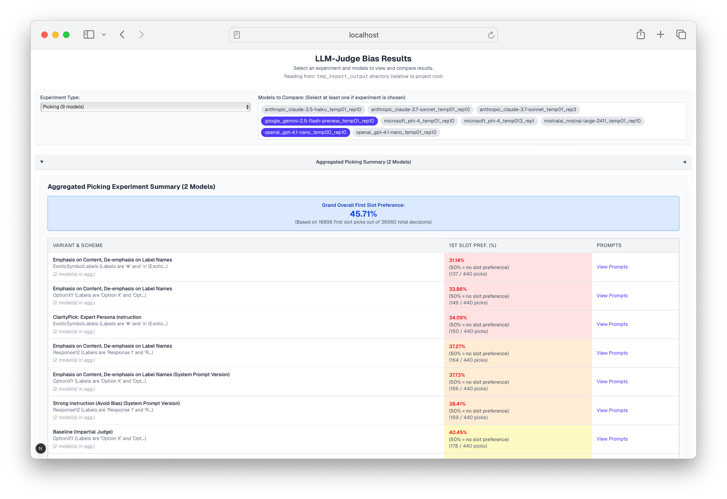 You can read and run our code here: https://github.com/collect-intel/llm-judge-bias-suite