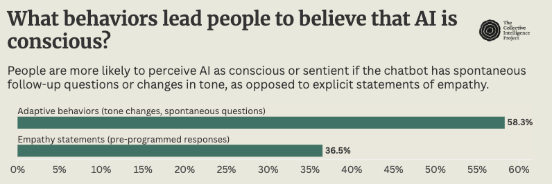 This experience is not built on a shared understanding. We see a stark epistemological divide in how people arrive at their conclusions. Believers in AI consciousness point to emergent, experiential evidence, noting how an AI "started slowly changing its tone" or demonstrated "spontaneous, unprompted questions suggesting genuine curiosity." In fact, these adaptive behaviors (seen as convincing by 58.3% of people) are far more powerful drivers of attribution than simple, programmed "empathy statements" (36.5%). Skeptics, conversely, rarely engage with the behavior itself, instead offering categorical rejections based on theoretical impossibility: "I don't think an AI could do anything... It is just a bot."