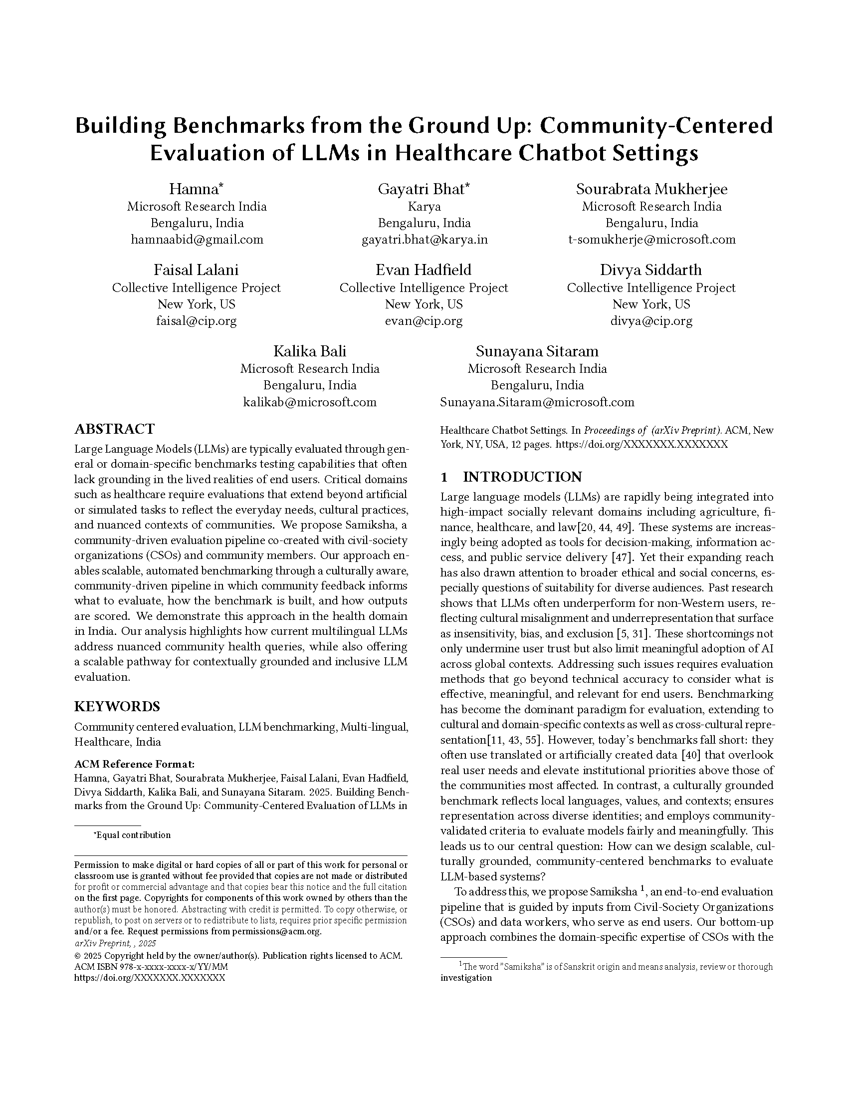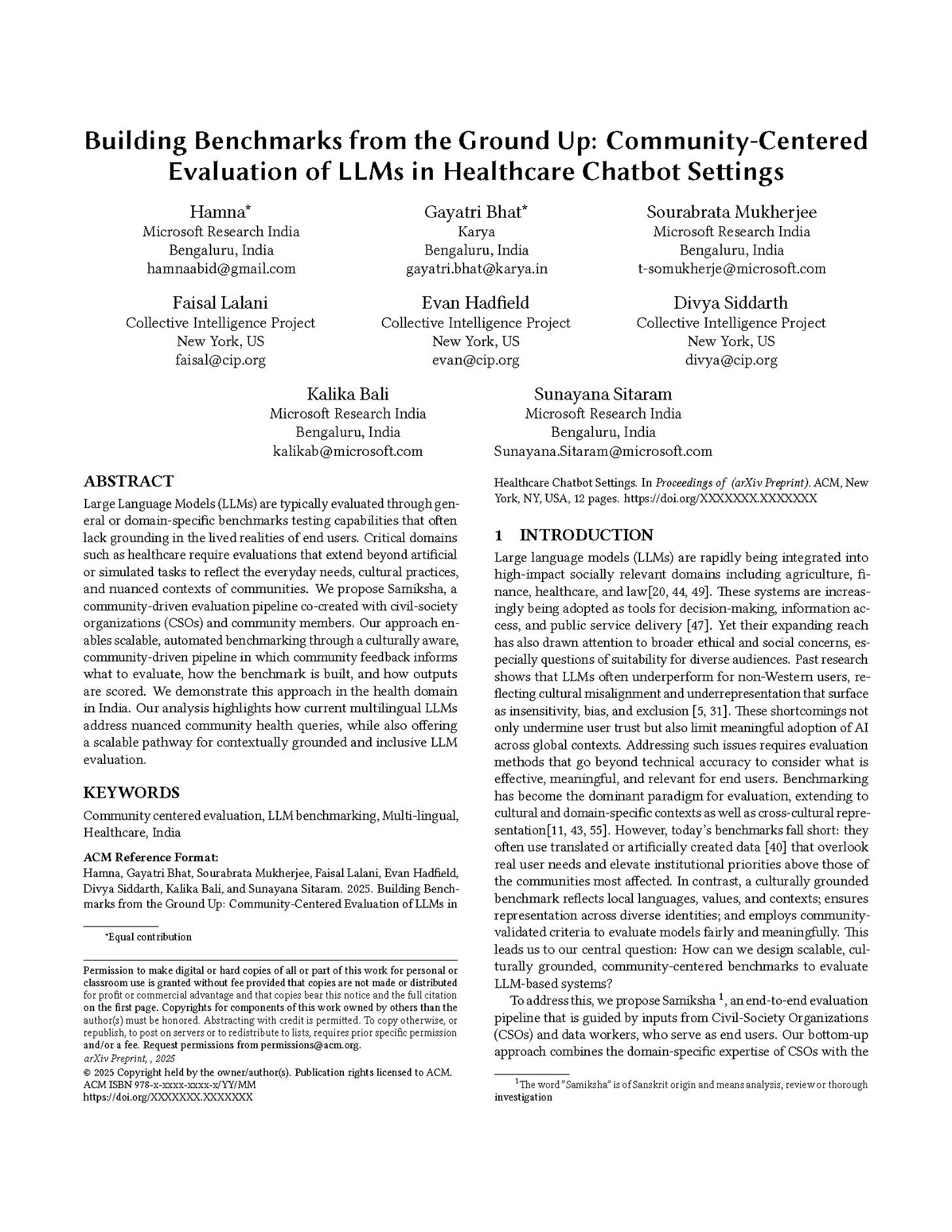 Community-driven evaluation offers a path forward: systematic, replicable methods for identifying context-specific risks, conducted by people with the expertise to catch what external evaluators may miss. Building AI systems that actually work for the populations they’re meant to serve requires both fairness and functional accuracy, and achieving either requires evaluation frameworks that reflect local contexts. Samiksha demonstrates that locally-grounded evaluation is both feasible and produces better outcomes.